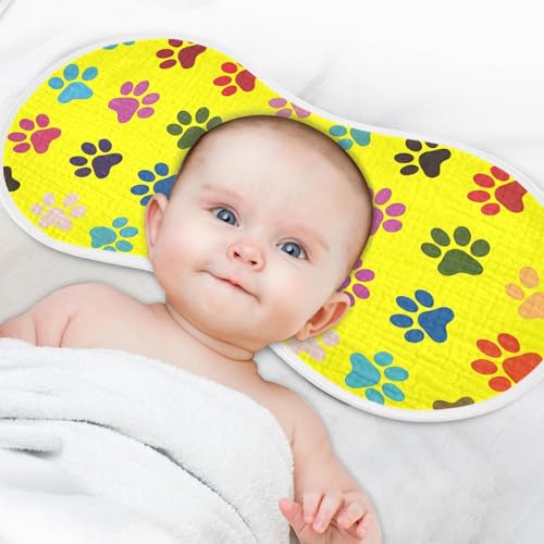 HOT ! Colorful Paw Prints Muslin Burp Cloths 22x11 Inch - 4-Layer Organic Cotton & TPU Waterproof Lining, Absorbent Baby Bibs for Boys/Girls with Hanging Loop