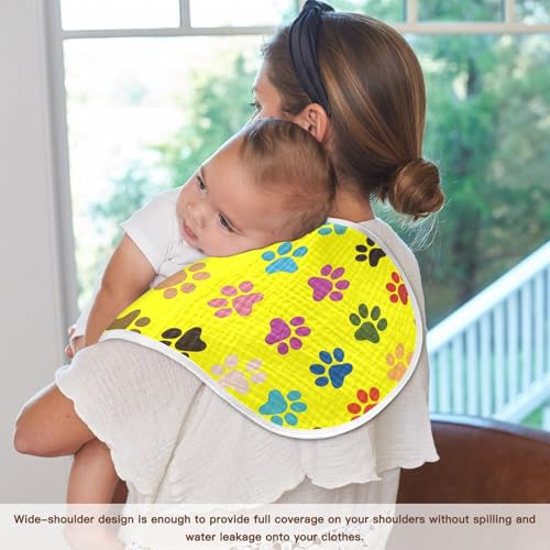 Colorful Paw Prints Muslin Burp Cloths 22x11 Inch - 4-Layer Organic Cotton & TPU Waterproof Lining, Absorbent Baby Bibs for Boys/Girls with Hanging Loop 4