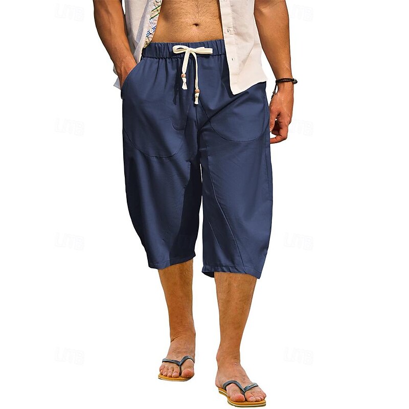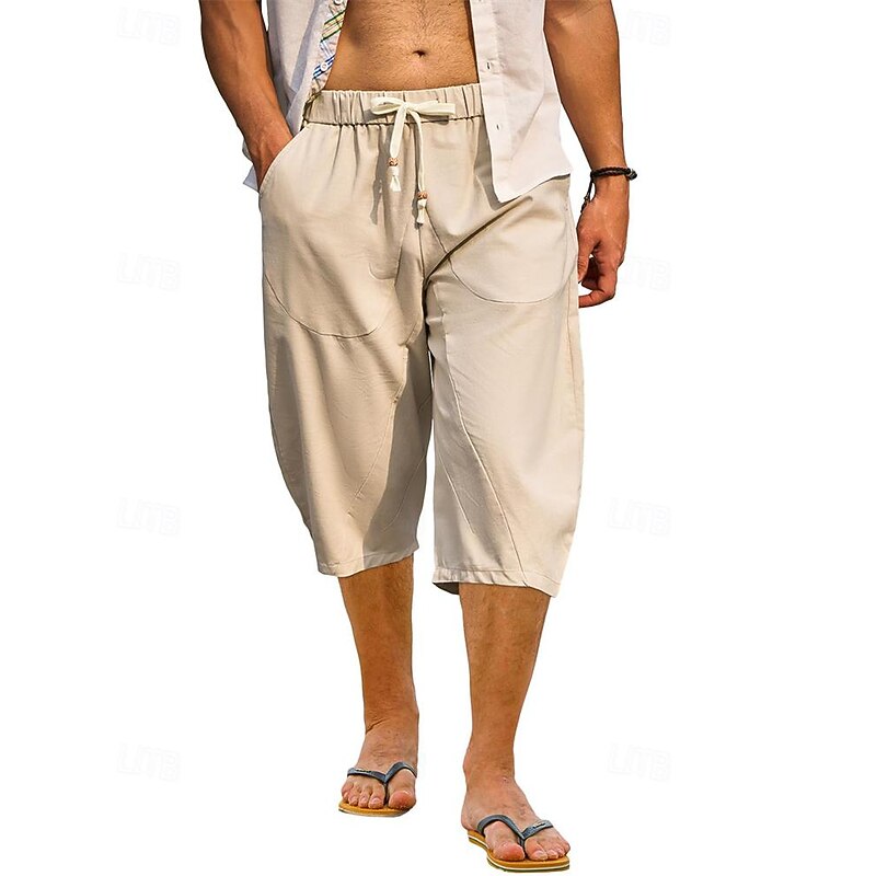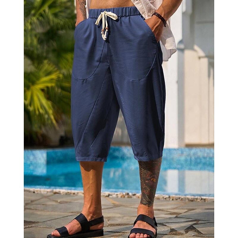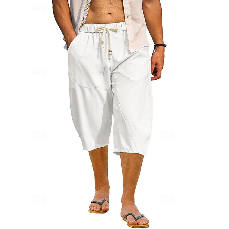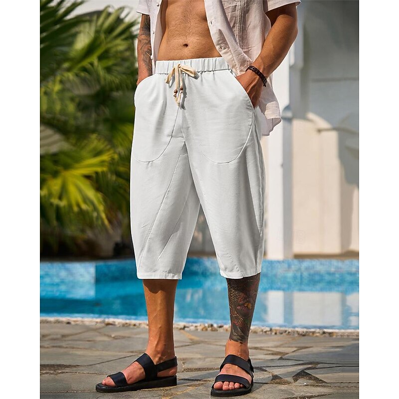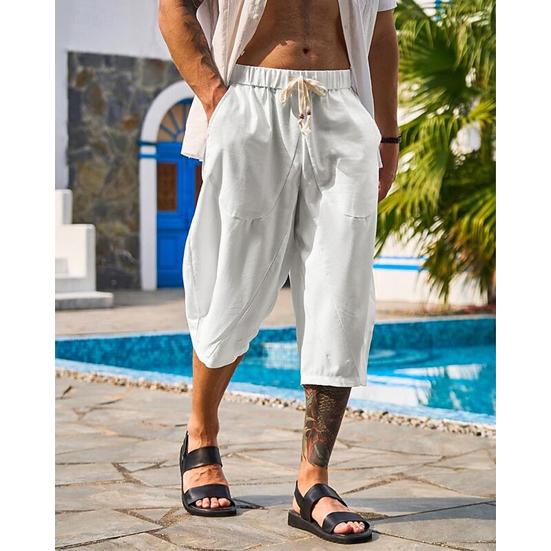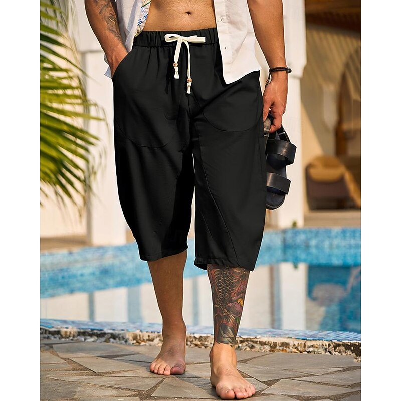 $16.49 - Men's Capri Pants Linen Shorts Summer Shorts Beach Shorts Harem Pants Pocket Drawstring Elastic Waist Plain Comfort Breathable Calf-Length Vacation Holiday Beach Hawaiian Boho Black White 2025. Shop for cheap Holiday online? Buy at lightinthebox.com on sale today!