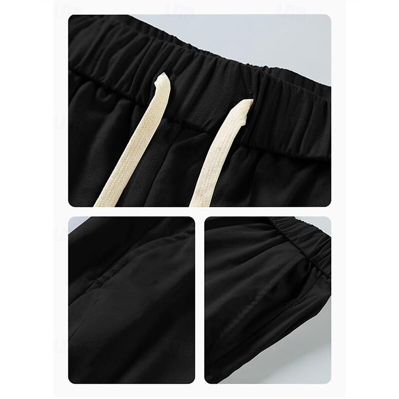 Men's Capri Pants Linen Shorts Summer Shorts Beach Shorts Harem Pants Pocket Drawstring Elastic Waist Plain Comfort Breathable Calf-Length Vacation Holiday Beach Hawaiian Boho Black White 5
