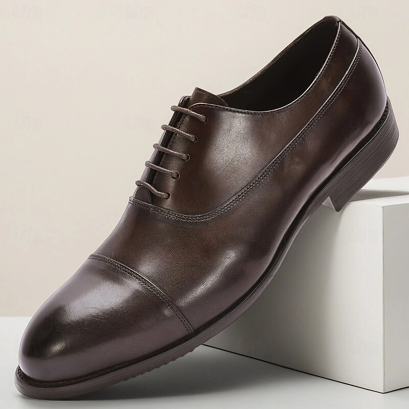 HOT ! Men's Brown Oxford Dress Shoes – Premium Leather Cap-Toe Shoes for Weddings, Office and Formal Events