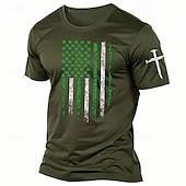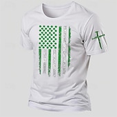 Highlights T-Shirt Description [Fabric] : Crafted from 100% cotton, this men's t-shirt offers a comfortable and breathable wear, ideal for everyday activities during the summer season. The micro-elastic property of the fabric adds to the overall comfort, ensuring a soft feel against the skin. [Fit] : Designed with a vintage crew neckline and short sleeves, this tee presents a regular fit that accommodates a range of body types. Its versatility makes it a staple piece for casual, classic, and sporty styles. [Design Highlights] : The shirt features a exclusive graphic print, creatively incorporating the American flag with stars replaced by green shamrocks, alongside distressed green and white vertical stripes. An additional cross print on the left sleeve adds a distinctive flair. The olive green base color of the shirt enhances these elements, making it a standout in any casual wardrobe. [Occasions] : Perfect for a variety of events such as vacations, holidays, and especially St. Patrick's Day. Whether you're attending a holiday gathering or enjoying a casual day out, this t-shirt allows you to express your individuality with style. [Size Range] : Available in a range of sizes from S to XXL, catering to different body shapes and ensuring a comfortable fit for adults.
