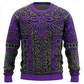 More information about Men's Viking Pullover Sweater Jumper Knitwear Crewneck Retro Vintage Casual Vacation Daily 3D Print Knitting Keep Warm Long Sleeve Spring Fall Winter Violet Blue Brown
