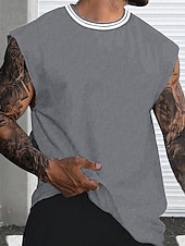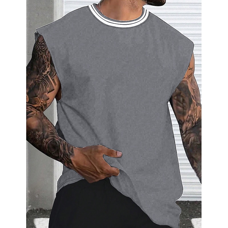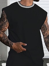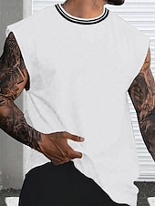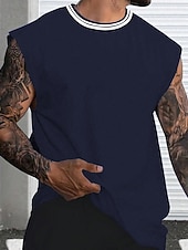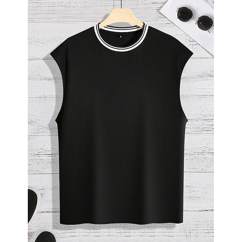 Highlights [Fabric] : Crafted from a soft, breathable cotton blend, this men's tank top ensures comfort and durability throughout wear. The high-quality material makes it a great choice for staying cool during outdoor activities. [Fit] : Designed with a relaxed fit, this tank top allows ease of movement, making it perfect for workouts or casual outings. The drop armhole style further enhances comfort and flexibility. [Design Highlights] : This tank top features a classic crew neckline with sporty striped detailing, adding a modern touch to its minimalistic, solid color design. Available in a range of colors including green, white, black, navy blue, and gray, it offers versatility for different style preferences. [Occasions] : Ideal for summer occasions such as going out, outdoor activities, and gym sessions, this piece effortlessly combines style with function. Whether paired with jeans or shorts, it delivers a contemporary, laid-back look suitable for various settings. [Size Range] : Available in sizes S through 3XL, this tank top provides options for a range of body types, ensuring a comfortable fit for everyone.
