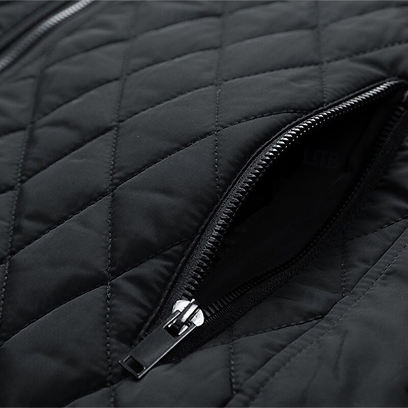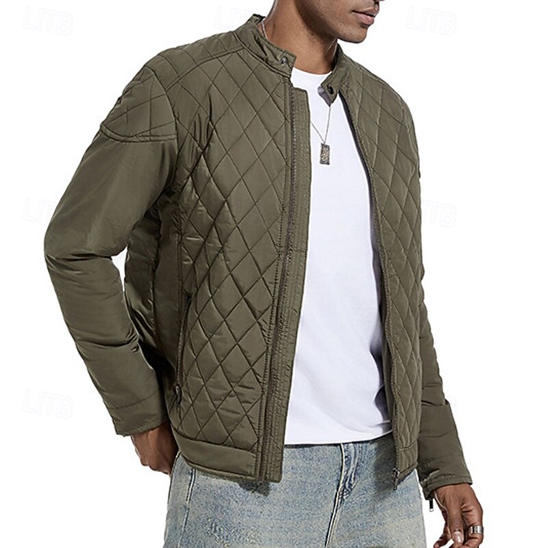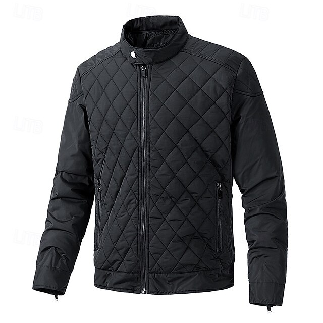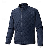 More information about Men's Winter Coat Quilted Jacket Parka Pocket Polyster Vacation Daily Wear Date Regular Fashion Casual Comfortable Thermal Warm Winter Solid / Plain Color Black Khaki Army Green Dark Blue Puffer