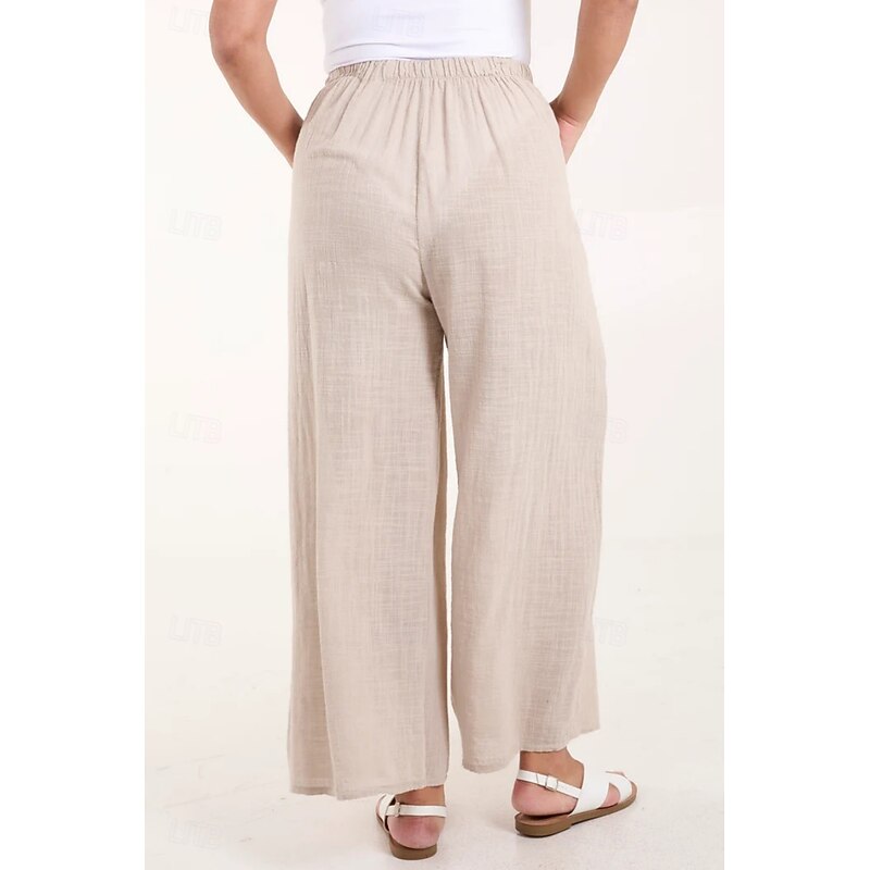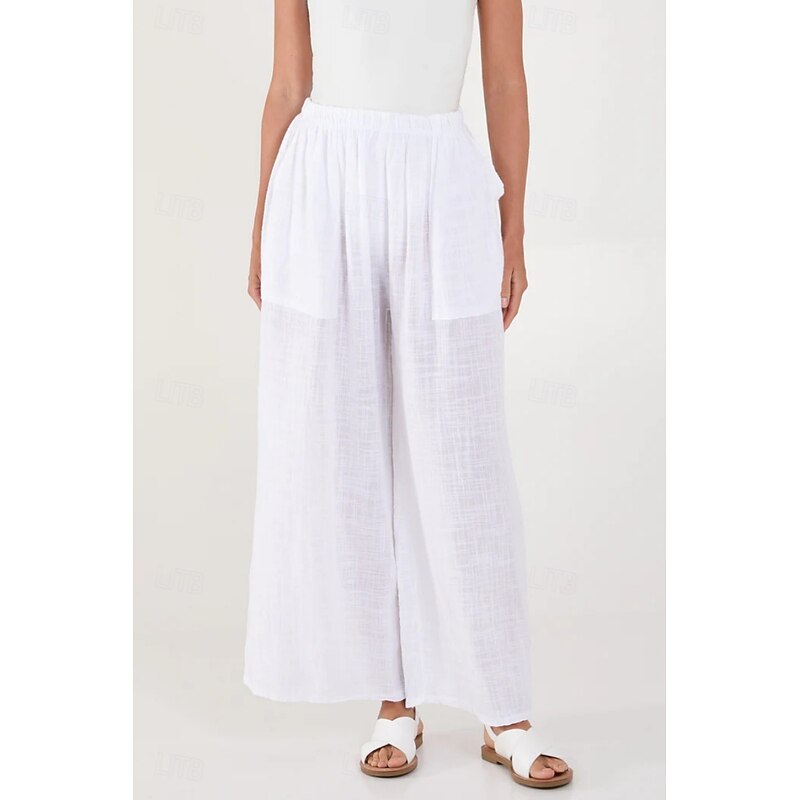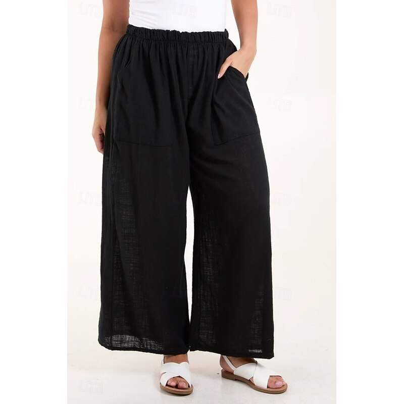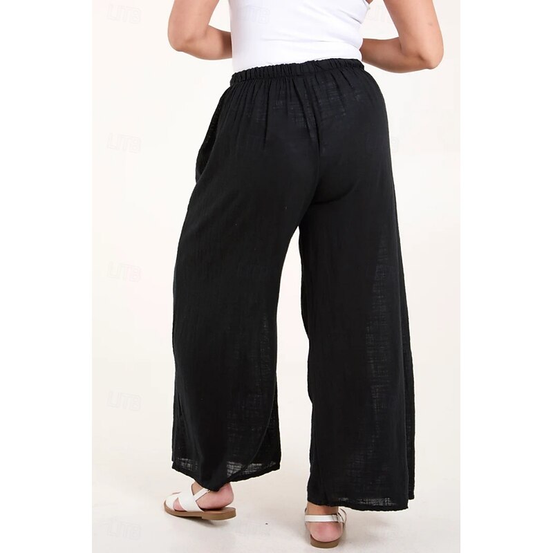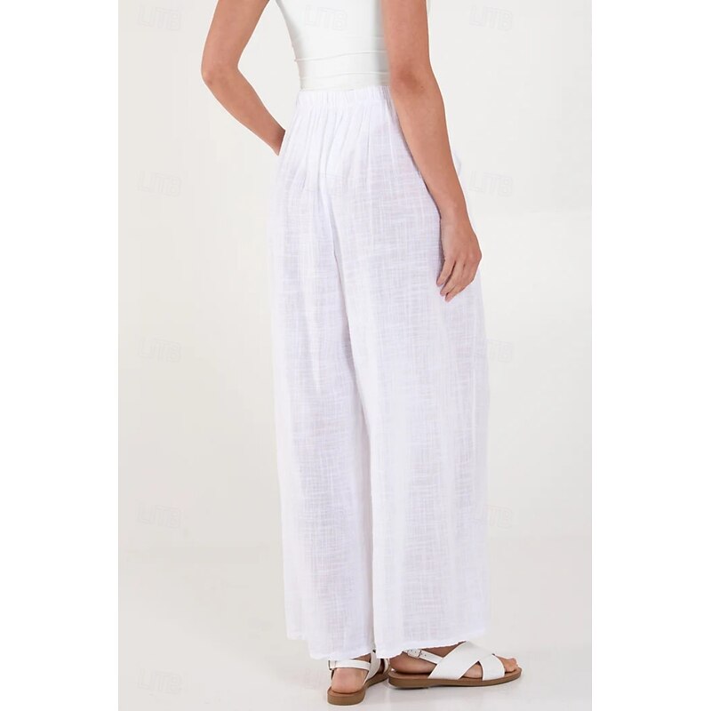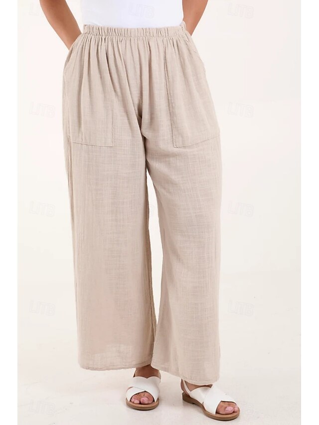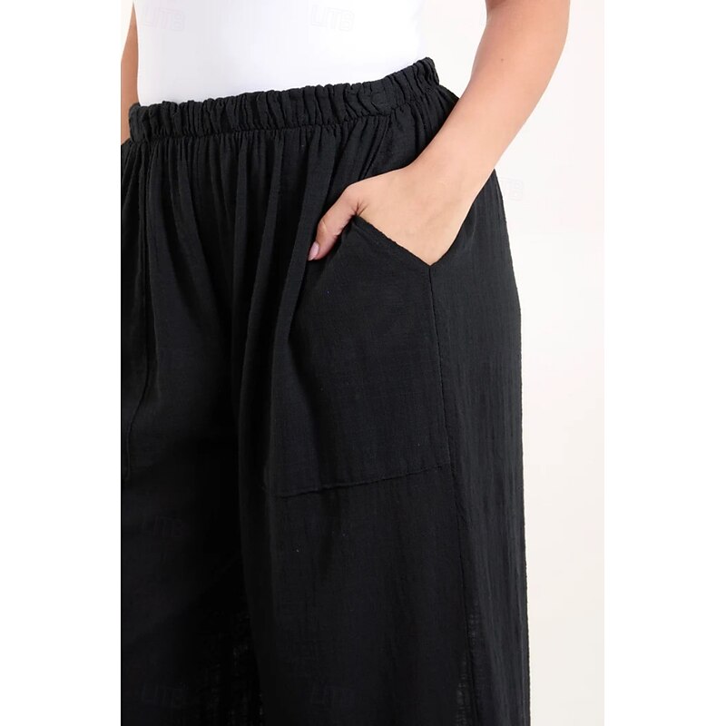 More information about Women's Cotton Linen Pants Pants Trousers Streetwear Casual Long High Waist Plain Pocket Elastic Drawstring Design High Cut Breathability Soft Micro-elastic Vacation Street Daily Wear Black White