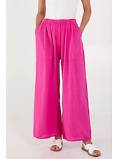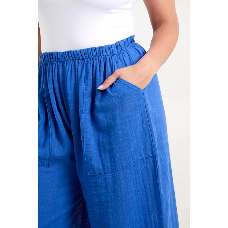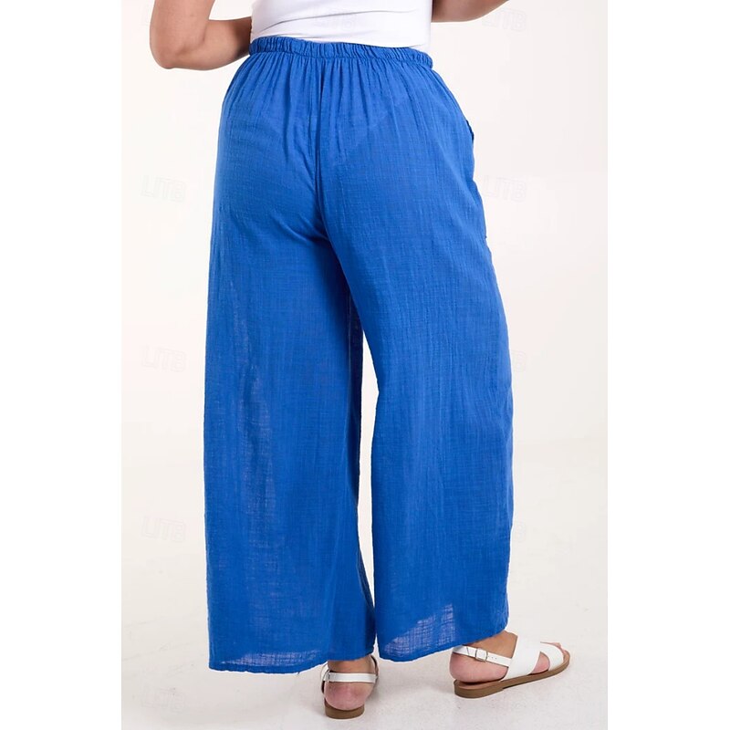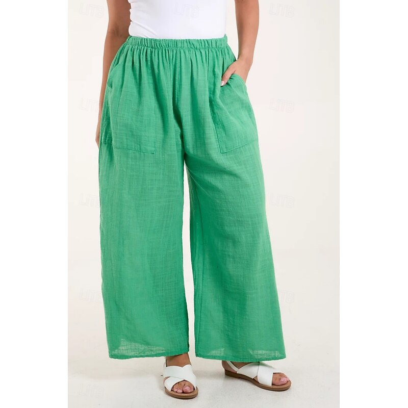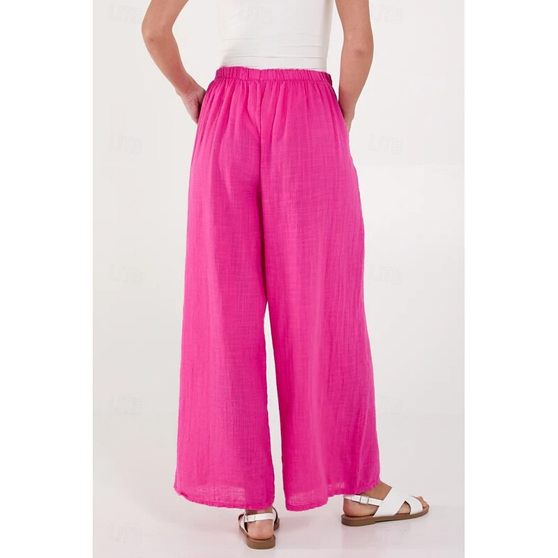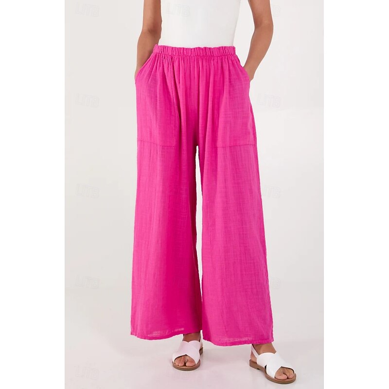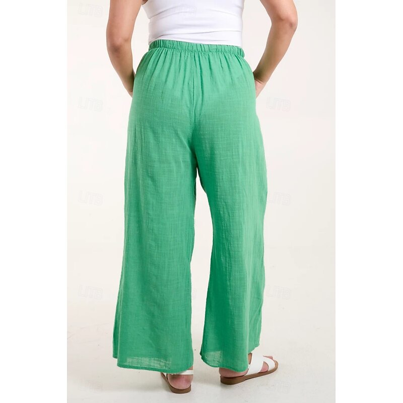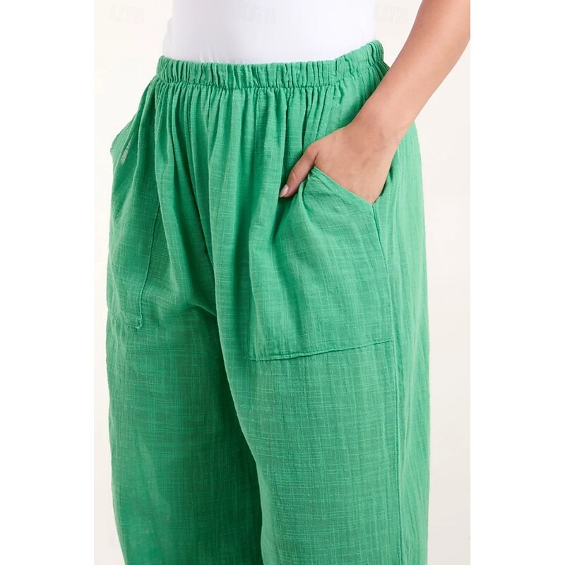 More information about Women's Cotton Linen Pants Pants Trousers Streetwear Casual Long High Waist Plain Pocket Elastic Drawstring Design High Cut Breathability Soft Micro-elastic Vacation Street Daily Wear Black White