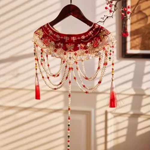 HOT ! Chinese Embroidery Butterfly False Collar Pearls Chain Tassels Yunjian Shawl