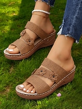 More information about Women's Brown Perforated Wedge Sandals with Floral Accents and Open Toe Design - Comfortable Summer Footwear for Casual Outings and Daily Wear