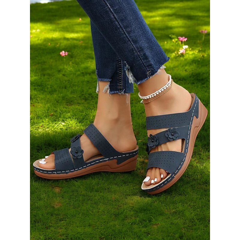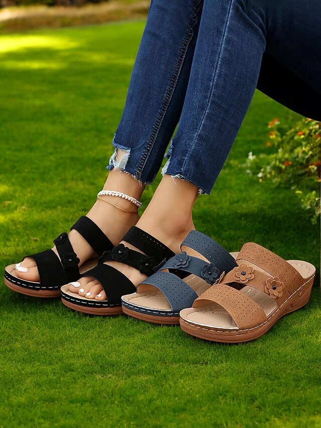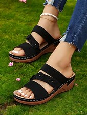 Highlights - Classy faux leather upper materials - Stylish round and open toe options - Comfortable foam rubber outsole - Keep up with 2024 trends with trendy wedge sandals