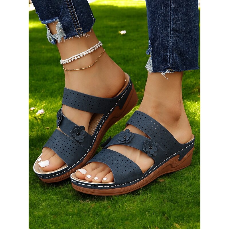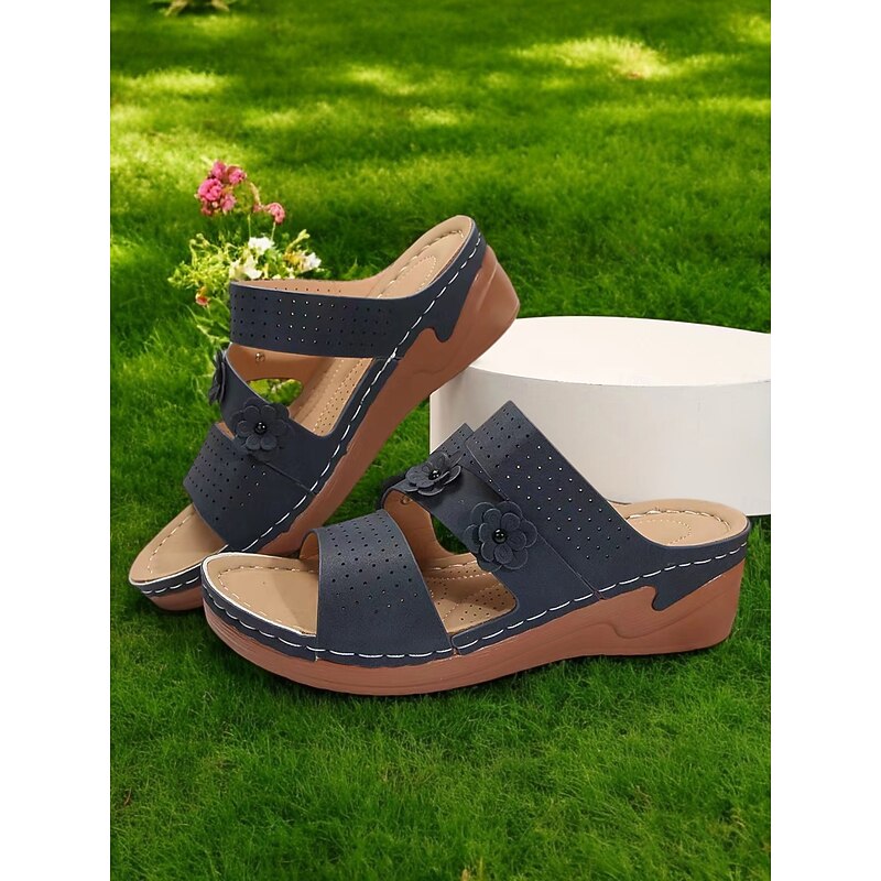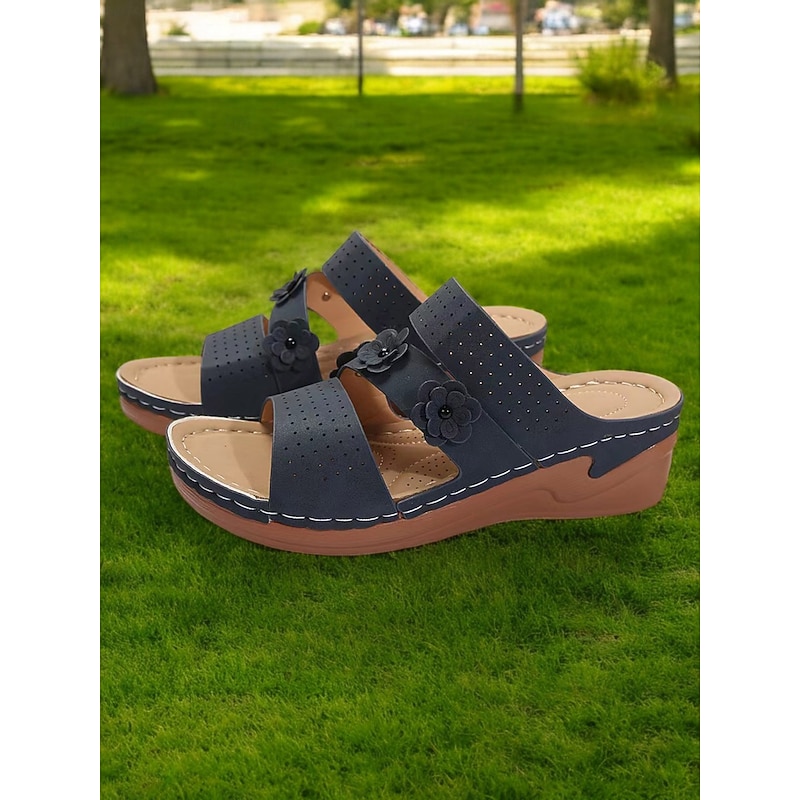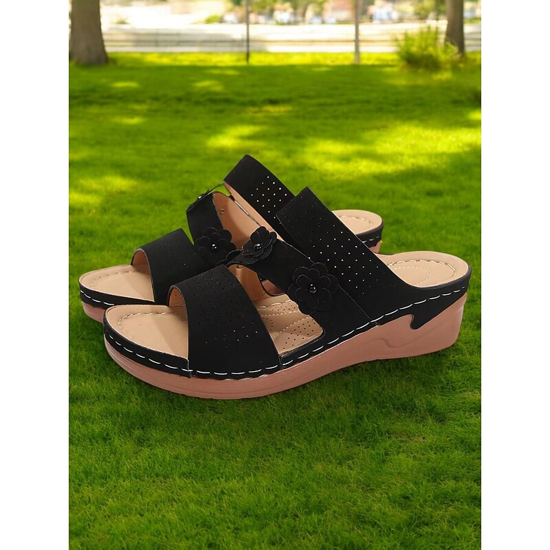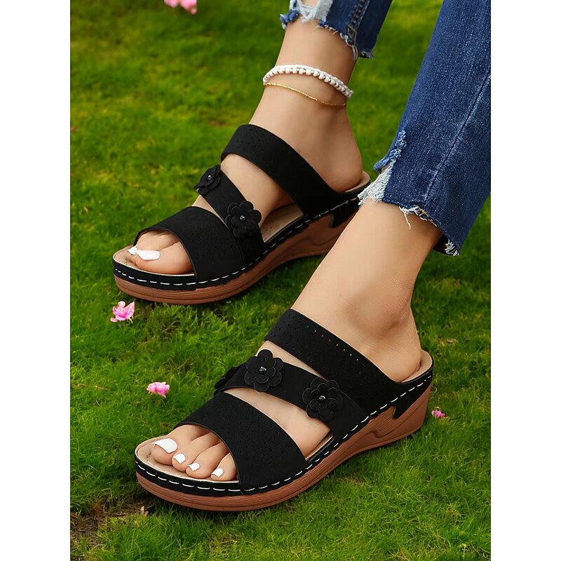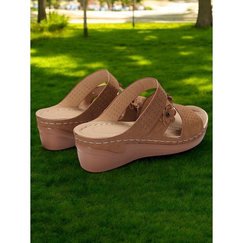 HOT ! Women's Brown Perforated Wedge Sandals with Floral Accents and Open Toe Design - Comfortable Summer Footwear for Casual Outings and Daily Wear