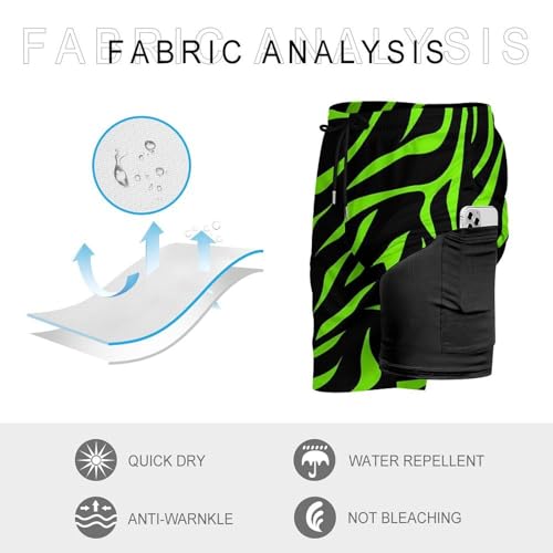 Neon Green Zebra Skin Men's Board Shorts Swimsuit Beach Pants Swimwear Bathing Suits 5
