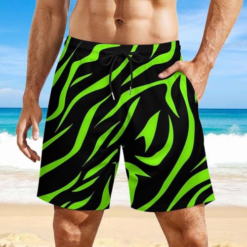 Neon Green Zebra Skin Men's Board Shorts Swimsuit Beach Pants Swimwear Bathing Suits 7