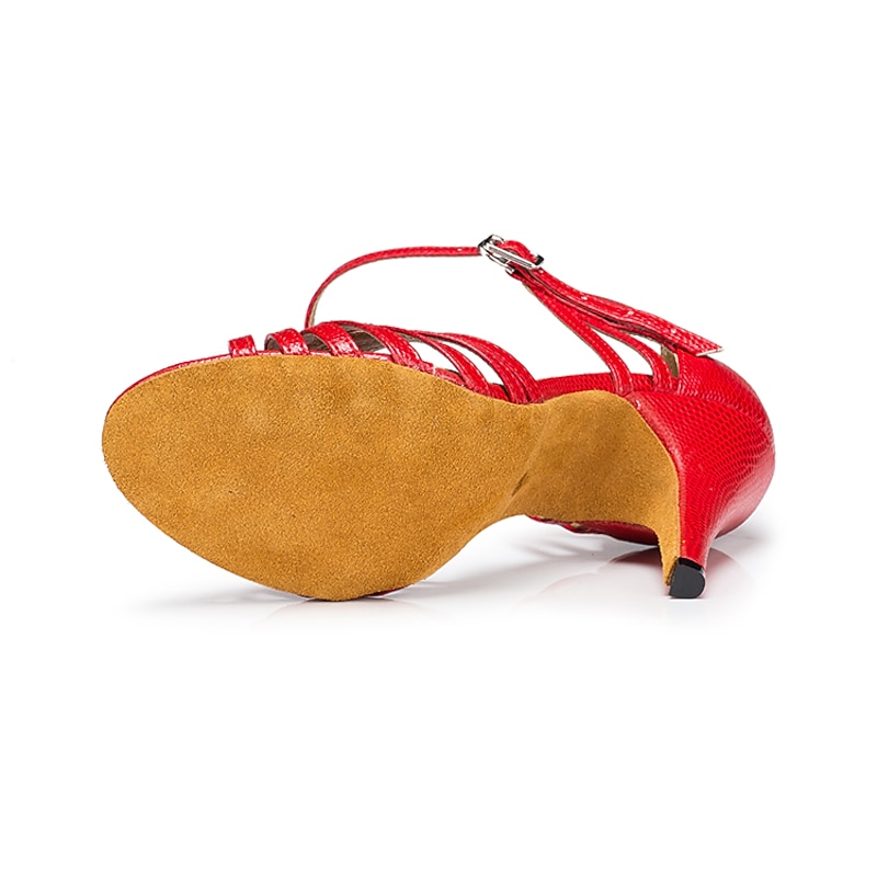 : Made from high-quality synthetic leather, these women's Latin dance shoes feature a glossy finish for a touch of elegance and durability. The lining is crafted from leather, ensuring comfort throughout wear.