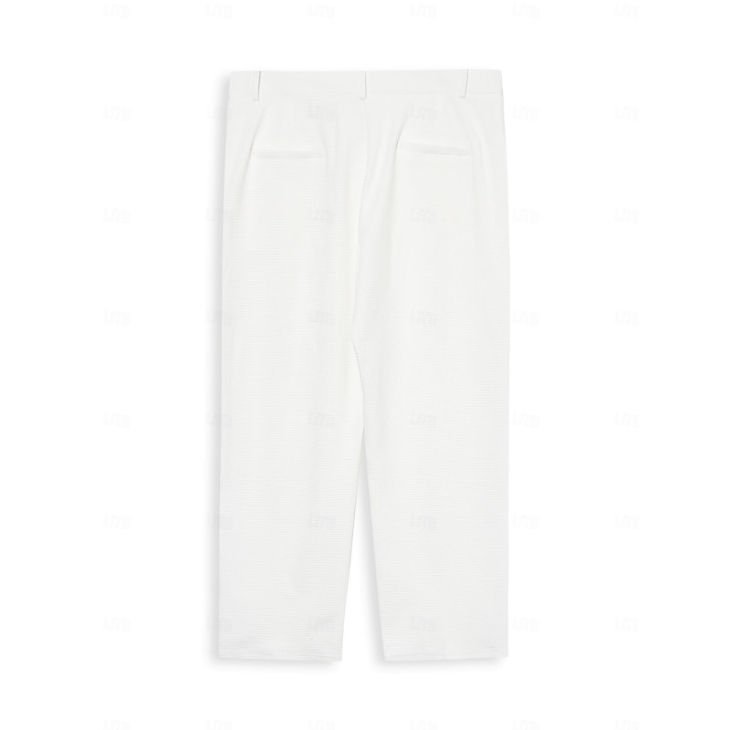 Men's Trousers Dress Pants Slacks Suit Pants Waffle Pants Front Pocket Straight Leg Plain Comfort Wedding Business Daily Fashion Chic & Modern Black White Stretchy 1