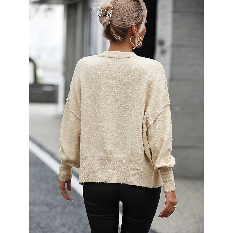 More information about Women's Sweater Cardigan Daily Casual Solid Color Shirt Collar Knitted Textured Long Sleeve Regular Tops Knit Home Work White Red Fall Winter