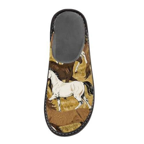 Slippers for Women Horses Running in Field Pattern Soft Fuzzy Women's Slippers Indoor and Outdoor Shoes 7