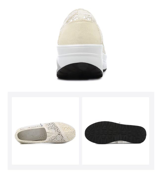 More information about Women's Floral Embroidery Lace Mesh Air Cushion Sneakers,Comfortable Orthopedic Diabetic Walking Toning Shoes Breathable Slip On Platform Loafers