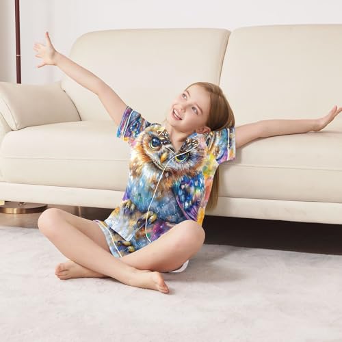 ALAZA Owl Color Bird Art Satin Pajamas Set Short Sleeve Button Down Sleepwear Summer Pjs 2 Piece 6