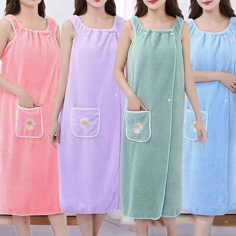 Quick Dry Absorb Water Wearable Bath Towel Coral Fleece Shower Wrap Skirt for Women Soft Thickened Fast Drying Home Bathrobe Pajamas 13