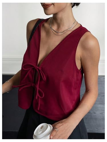 MakeMeChic Women's Bow Tie Front Vest V Neck Sleeveless Summer Vest Tops 5