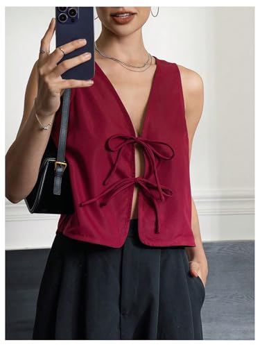 • Features: V neck, sleeveless, tie front, streetwear vest for women