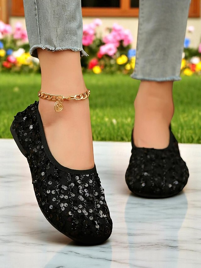 Women's Glitter Sequin Wide-Toe Ballet Flats, Soft Slip-On Barefoot Shoes for Evenings, Weddings and Elegant Garden Gatherings 4