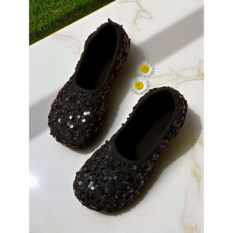 Women's Glitter Sequin Wide-Toe Ballet Flats, Soft Slip-On Barefoot Shoes for Evenings, Weddings and Elegant Garden Gatherings 9