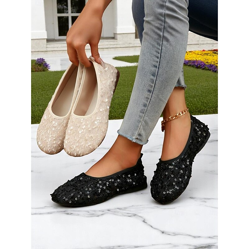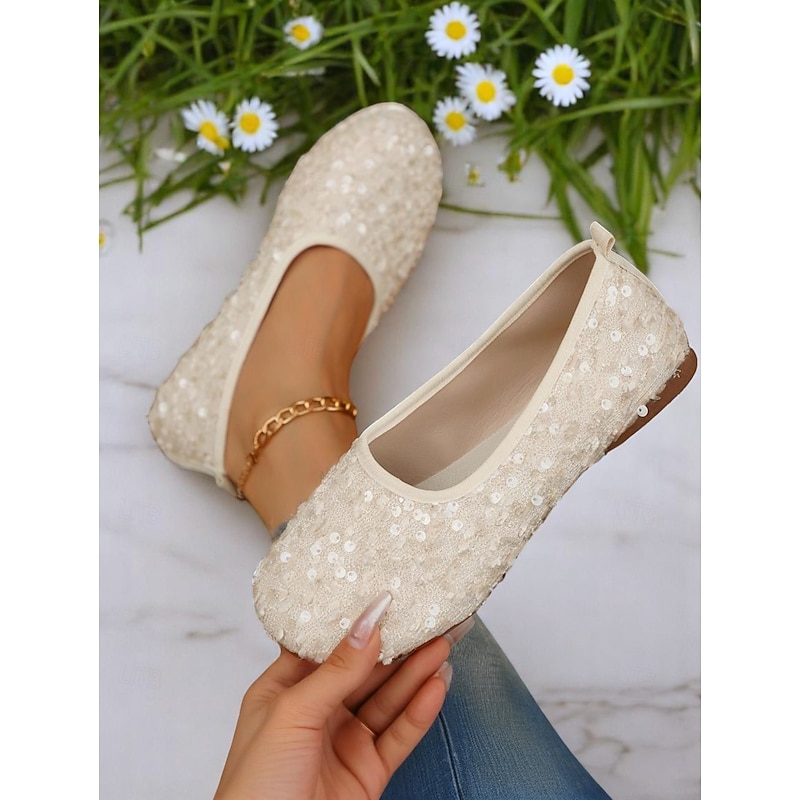 HOT ! Women's Glitter Sequin Wide-Toe Ballet Flats, Soft Slip-On Barefoot Shoes for Evenings, Weddings and Elegant Garden Gatherings