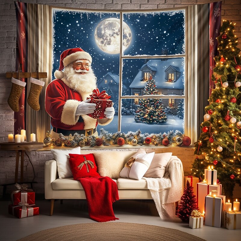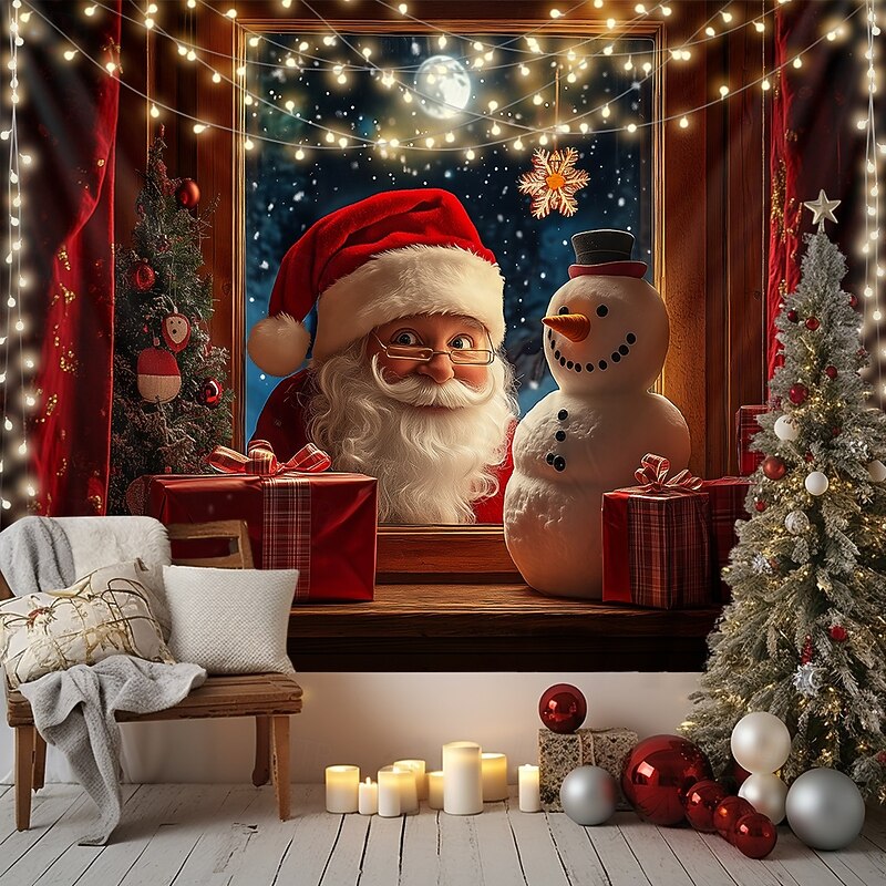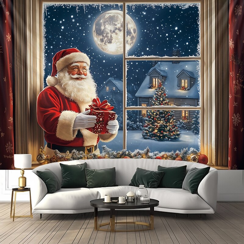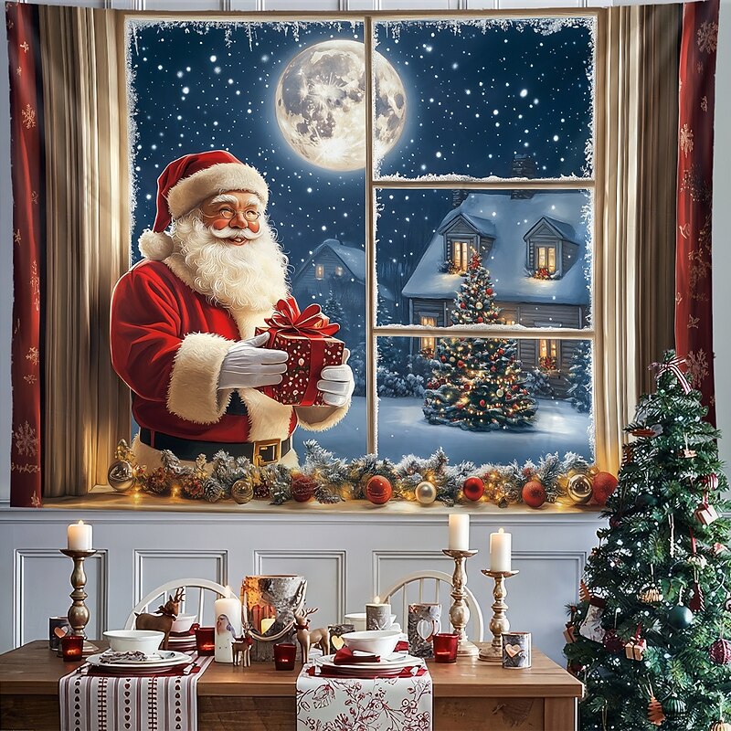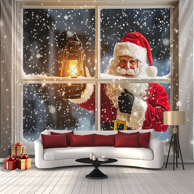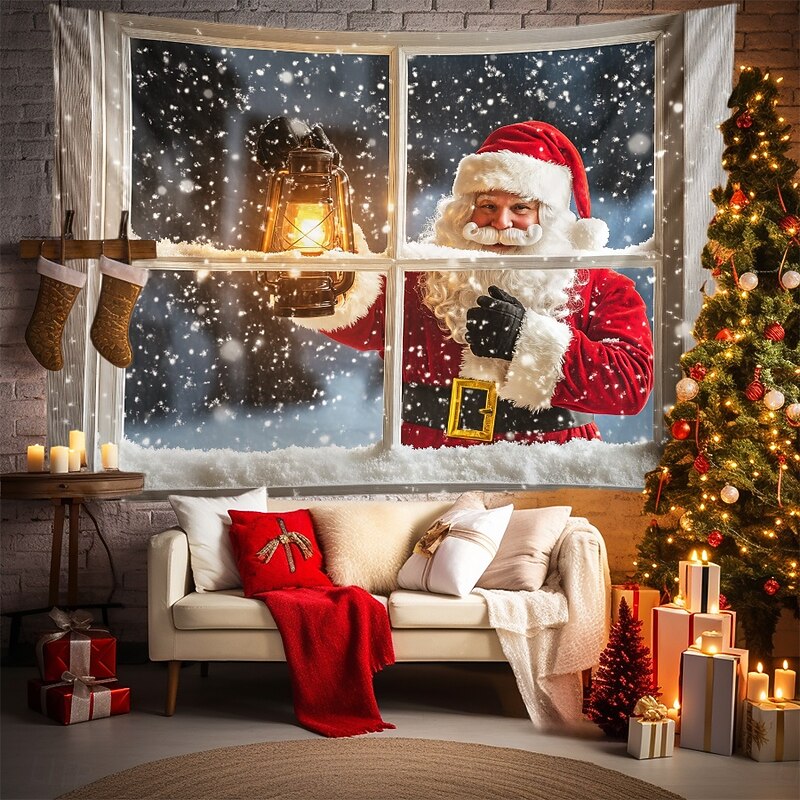 HOT ! Christmas Decorations Hanging Tapestry Santa Outside Window Wall Art Large Tapestry Mural Decor Photograph Backdrop Blanket Curtain Home Bedroom Living Room Decoration