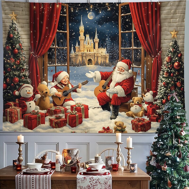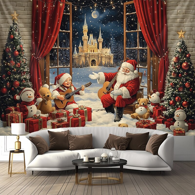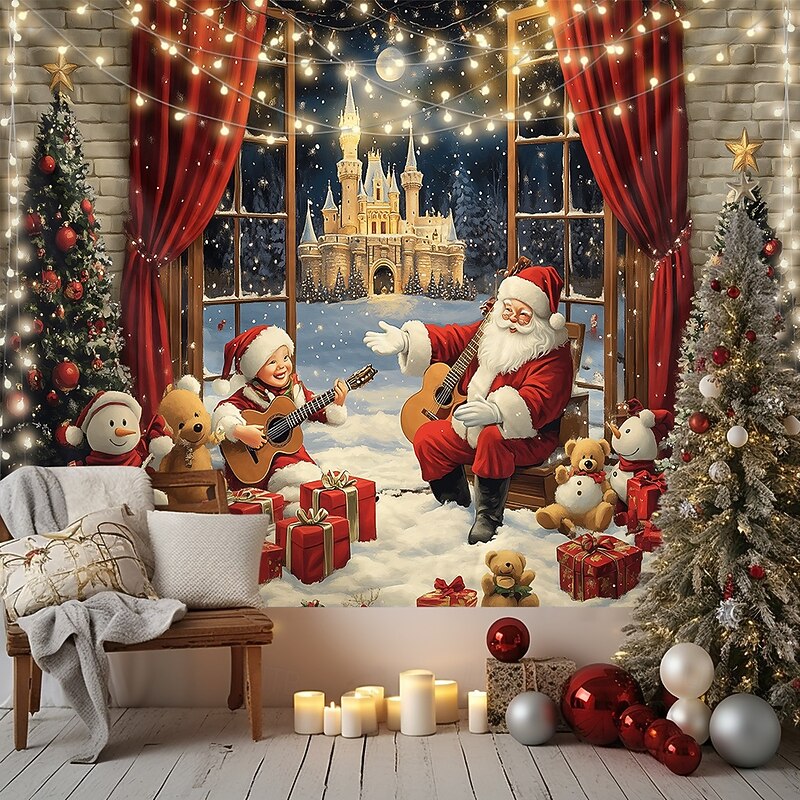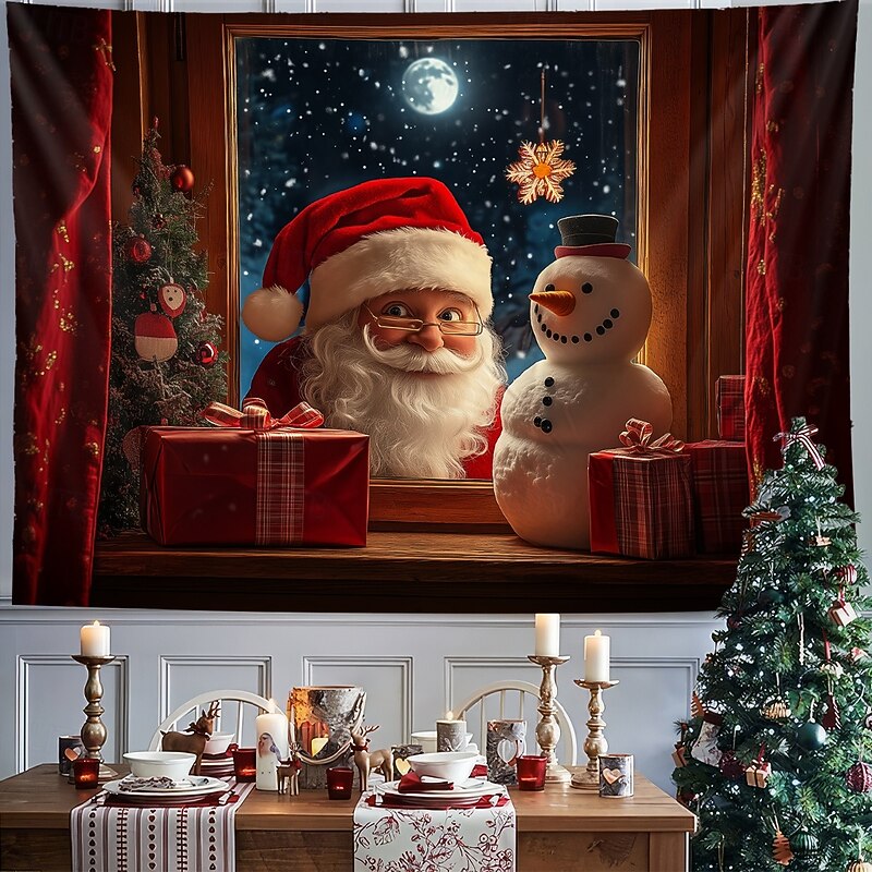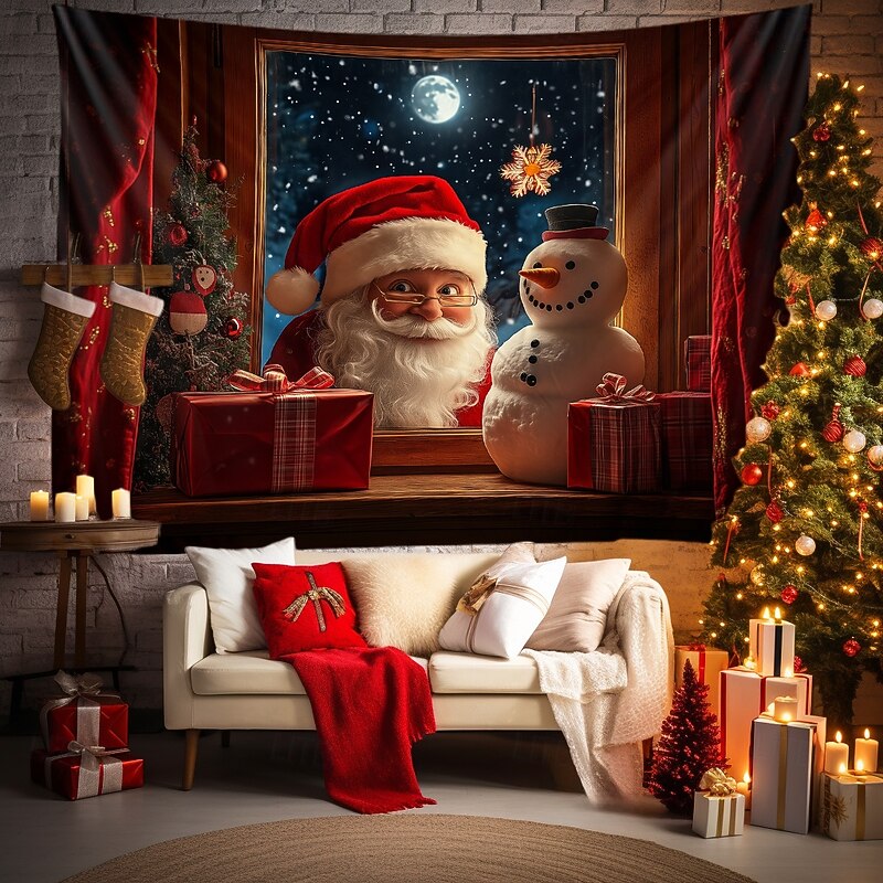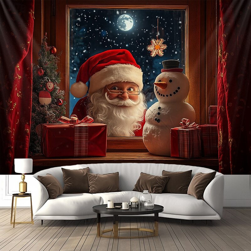 HOT ! Christmas Decorations Hanging Tapestry Santa Outside Window Wall Art Large Tapestry Mural Decor Photograph Backdrop Blanket Curtain Home Bedroom Living Room Decoration