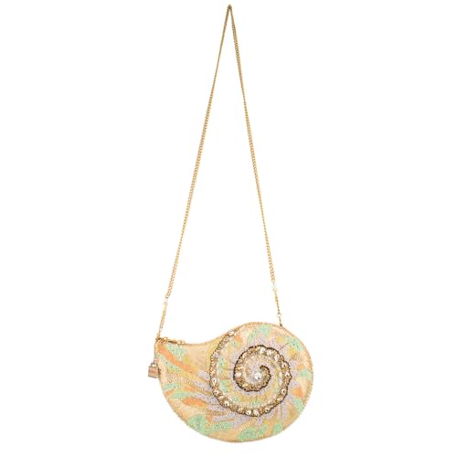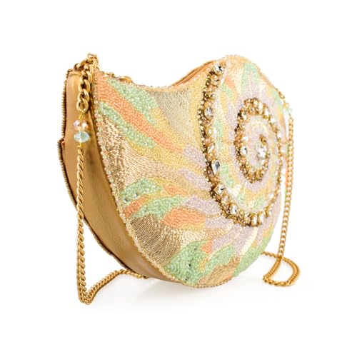 trending ! Mary Frances Down By the Sea Beaded Crossbody Handbag Shell Evening Bag with Removable Chain Strap, Multicolor