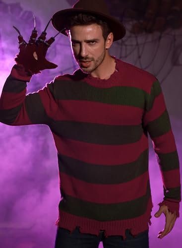 • FREDDY COSTUME: The costume design is inspired by the iconic character from the original horror movie, our knitted striped sweater boasts accurate colors and design details that are faithful to the film.