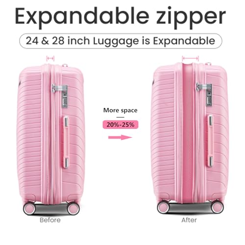 Luggage Sets 4 Piece, Hard Shell Lightweight Carry on Expandable Suitcase with Spinner Wheels Travel Set TSA Lock(#06 Pink) 6
