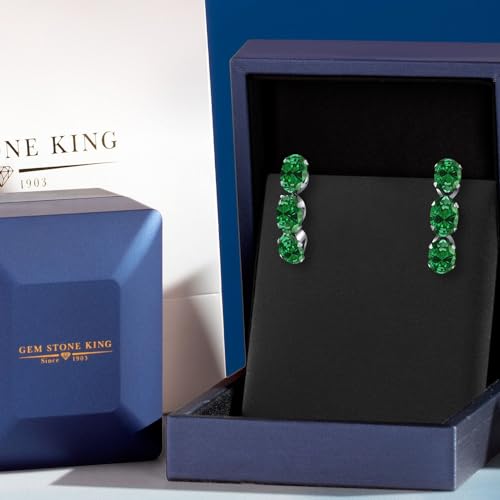 Gem Stone King Oval Gemstone Birthstone 3 Stone Dangle Earrings For Women | 925 Sterling Silver | Oval 6X4MM | Fine Jewelry Gifts for Her Mom Women Wife 3