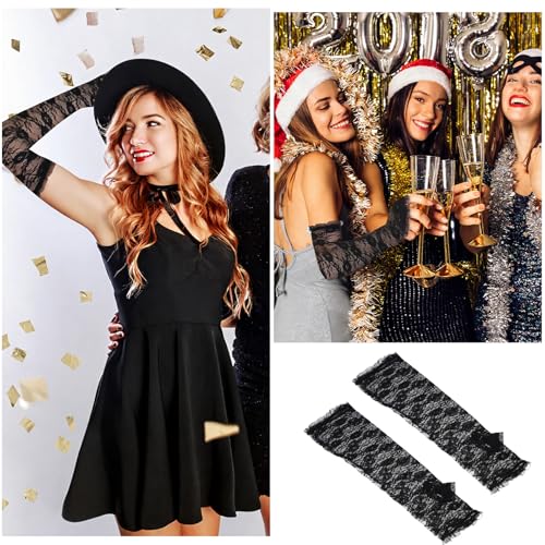 2 Pcs Lace Gloves, Black Long Lace Gloves, Elegant Vintage Long Fingerless Lacy Sleeves, Elbow-Length Lacy Arm Glove Fingerless for Tea Operas Parties Weddings Cosplay Dance Concert 1
