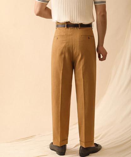 Men's Linen Dress Pants Vintage Relaxed Fit Straight Legs Business Formal Slacks Pants 6
