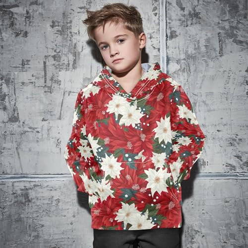 Kids Hoodies Sweaters Christmas Poinsettia Flower Hooded Sweatshirts with Big Pockets for Boys Girls B0400051 4