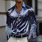 More information about Men's Leaf Plants Satin Shirt Dress Shirt Button Up Shirt Long Sleeve Fashion Casual Vacation Holiday Summer Spring Fall Turndown Collared Shirts 3D Print Navy Blue