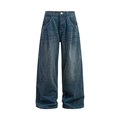 trending ! Men's American Washed Distressed Double Pleated Jeans Loose Baggy Wide Leg Floor Length Casual Trousers
