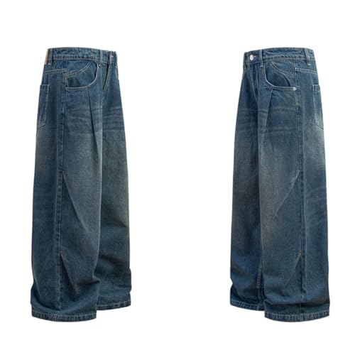 More information about Men's American Washed Distressed Double Pleated Jeans Loose Baggy Wide Leg Floor Length Casual Trousers