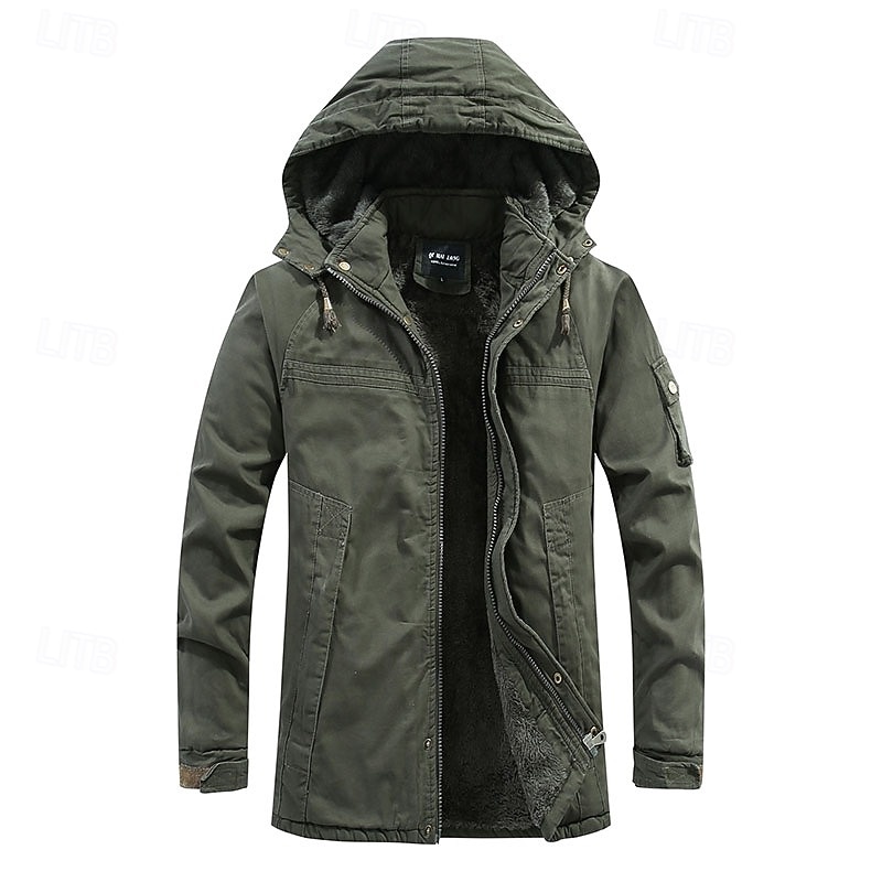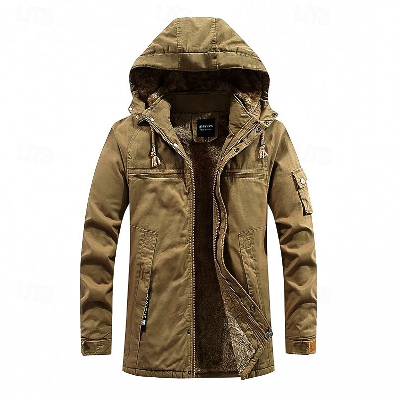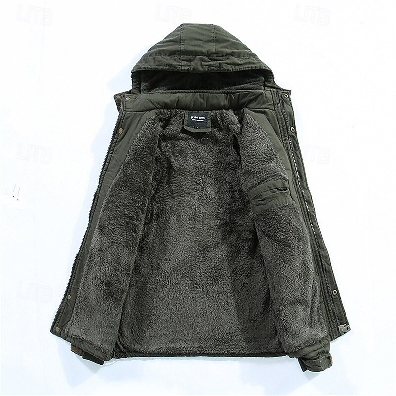 More information about Men's Fleece Jacket Outdoor Fleece Lining Windproof Hiking Outfits Hiking Clothes Winter Autumn / Fall Windbreaker Solid Color Black Army Green Khaki