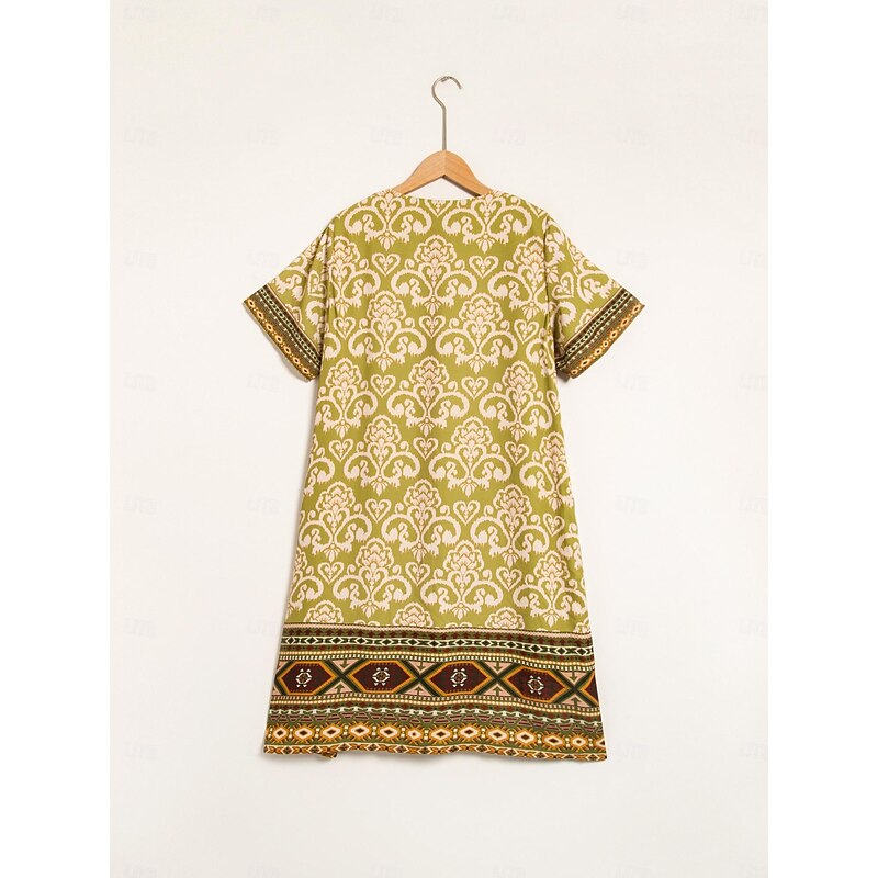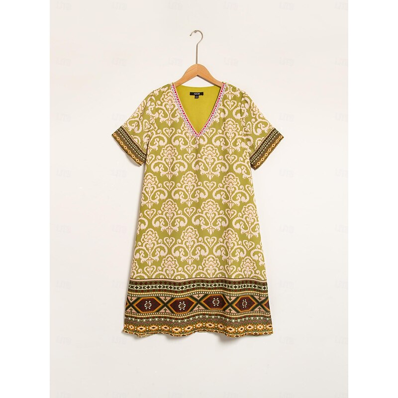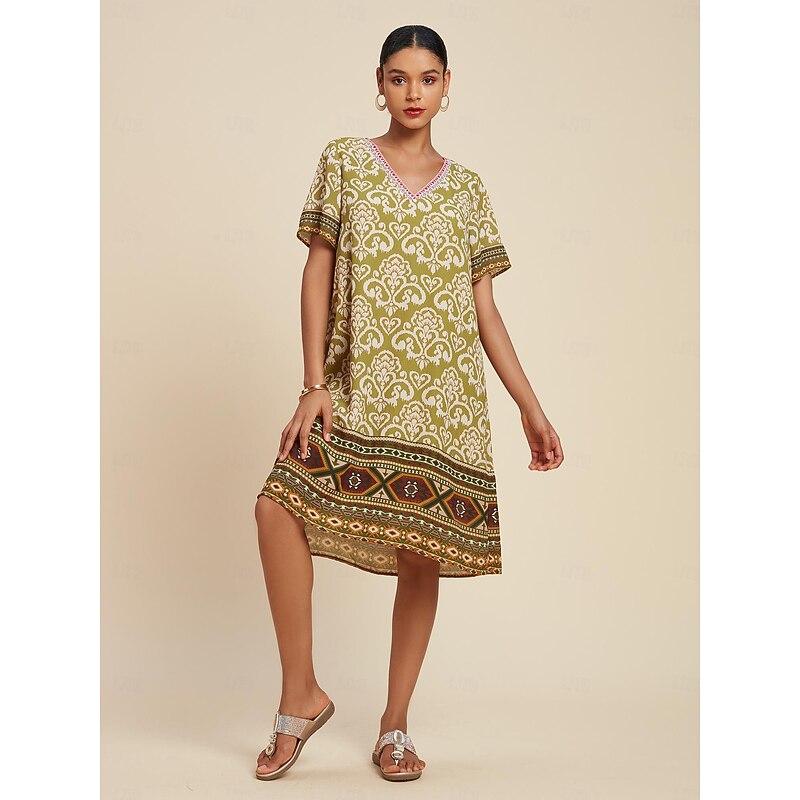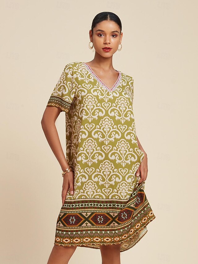 HOT ! Chiffon Geometric Boho V Neck Short Sleeve Mini Dress