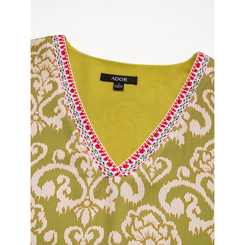 More information about Chiffon Geometric Boho V Neck Short Sleeve Mini Dress