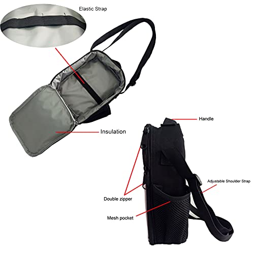 • LUNCH BAG: Polyester Lining Material,EVA+PE Cotton, 7.48inch(L)x3.14inch(W)x9.84inch(H), , Insulated lunch box with mini Bottle Holder pocket.