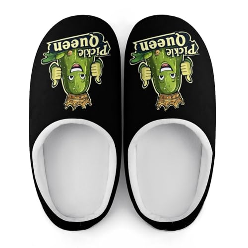 HOT ! Queen of Pickle Women's Cotton Slippers Indoor Outdoor Slip-on Warm House Shoes with Anti-Skid Rubber Sole