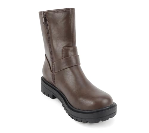 Soda “Kicker” ~ Women Moto Bootie Round Toe Buckle Straps Mid-Calf with Side Zipper 6