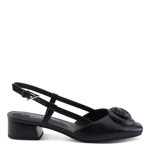Azura Women's ANGELICISH Buckle Shoes - Smooth Leather, Central Flower Applique, Sturdy Block Heel 6