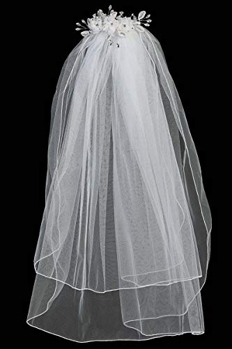 Swea Pea & Lilli Girls First Communion Veils - White Holy 1st Communion Headpiece with comb, Flowers, Crystal, Pearls & Rhinestones 1