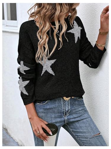 HOT ! Women's Star Graphic Sweater Y2k Boat Neck Long Sleeve Knit Casual Pullover Tops